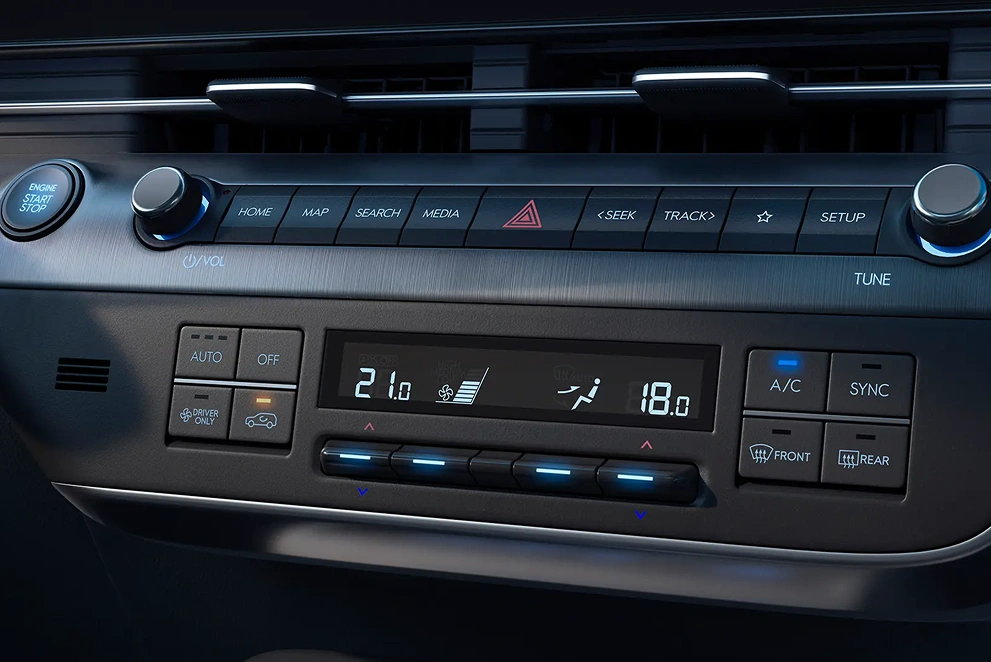 Ar-condicionado digital dual zone com controle individual de temperatura e saída para os bancos de trás.